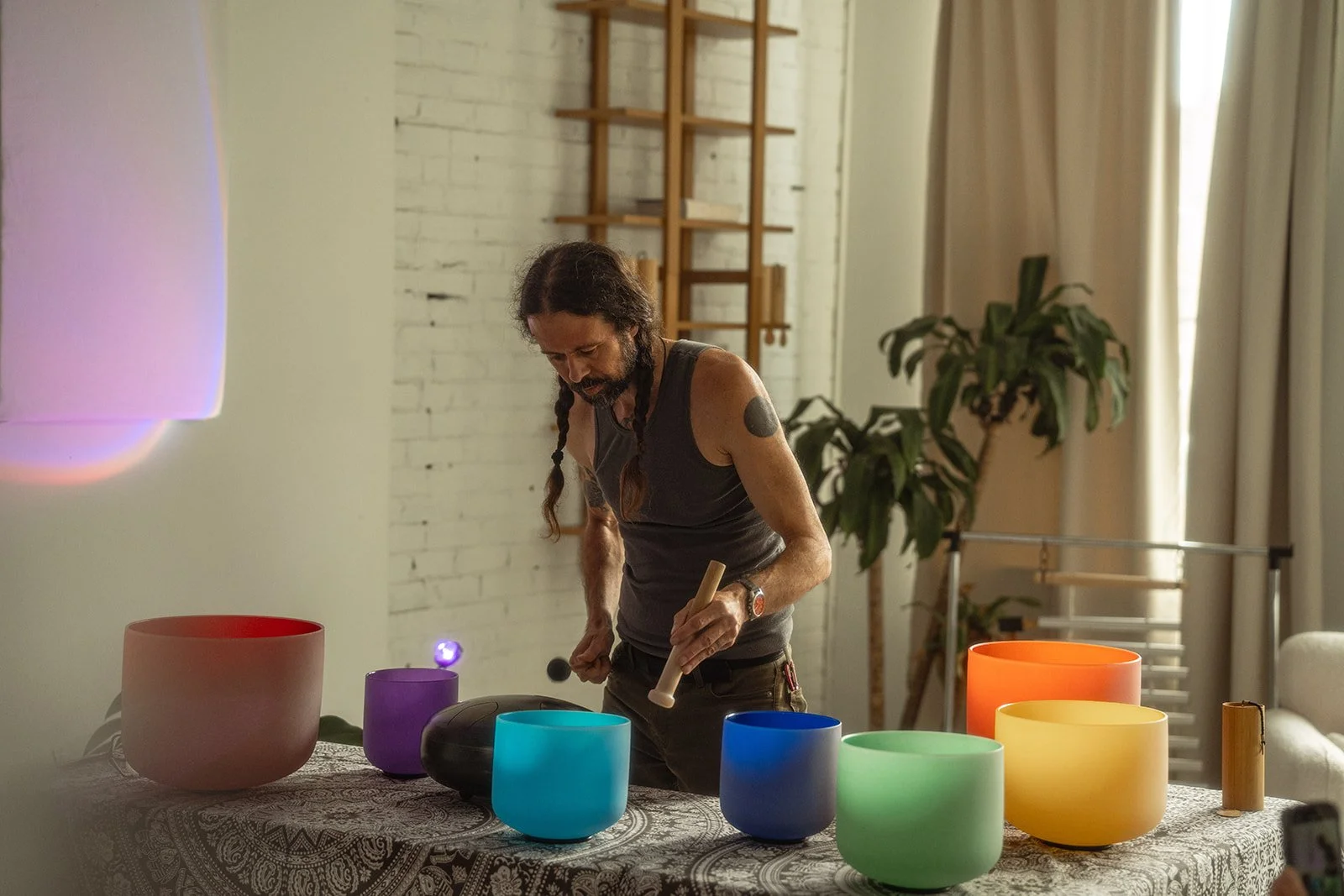 A 75-minute immersive sound bath follows, weaving together crystal singing bowls, flutes, chimes, tuning tubes, and tongue drums to create a multi-layered soundscape that resonates deeply with the nervous system.